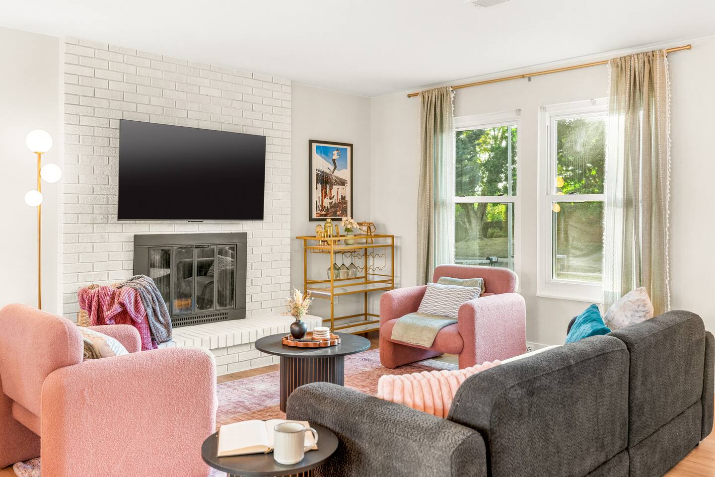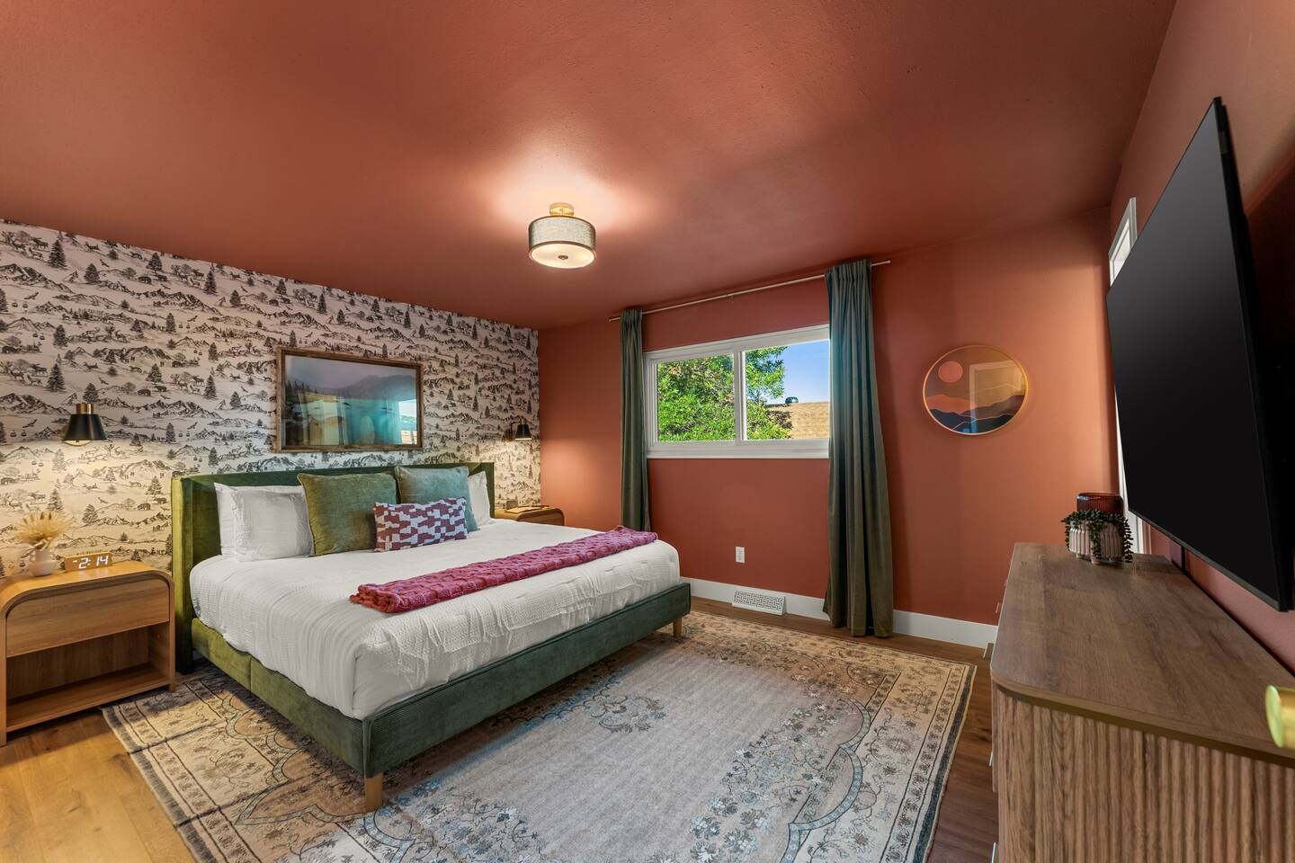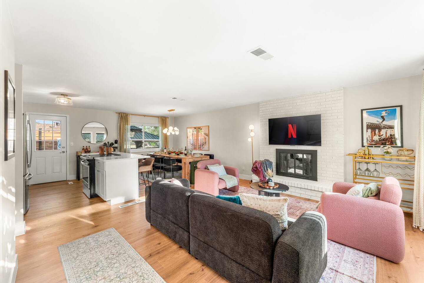Where boutique hotel style meets homey comfort in Arvada, CO! Perfect for groups, this beautifully designed home features 5 King beds + 2 Twin bunk beds (9 total). Enjoy a modern open layout with: • Hot tub • Movie room • Air hockey, ping pong, Pop-A-Shot basketball, arcade games • Corn hole, badminton & year-round fire pit Stylish décor, luxury touches, and family-friendly amenities make this the perfect Arvada retreat for gatherings and getaways. 11 miles to Denver & 20 mins to Boulder!