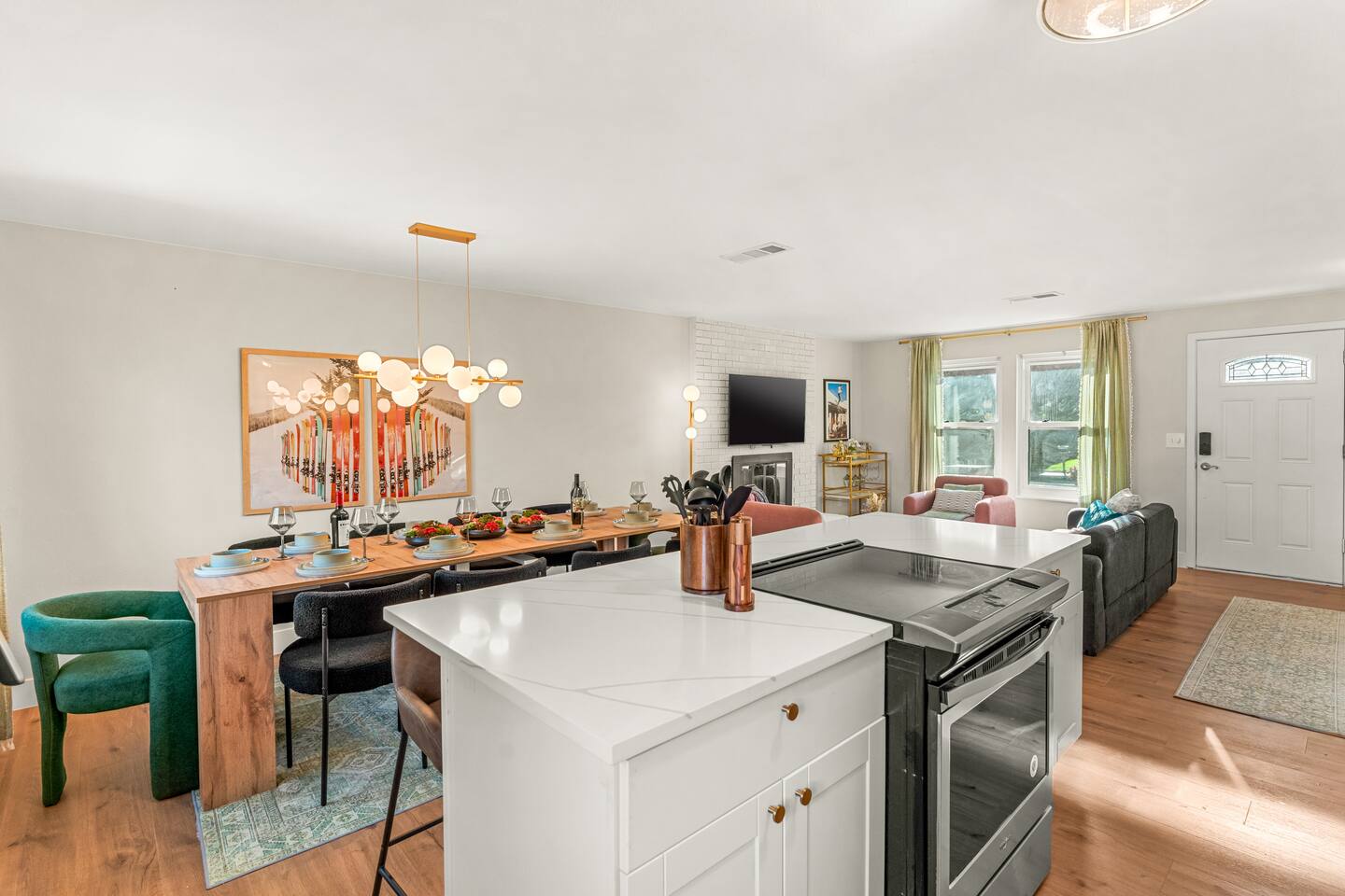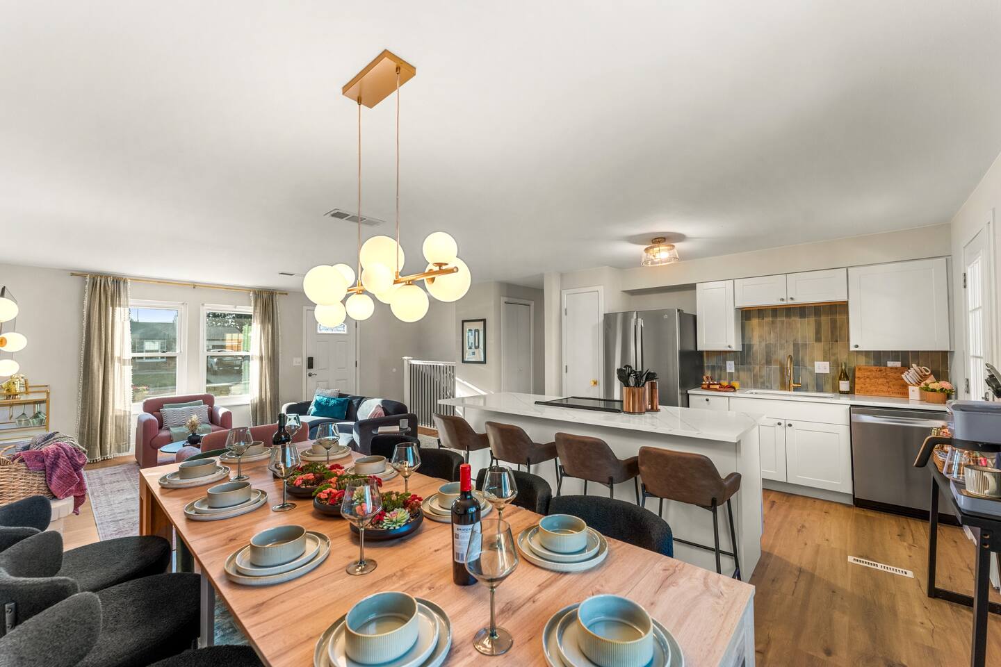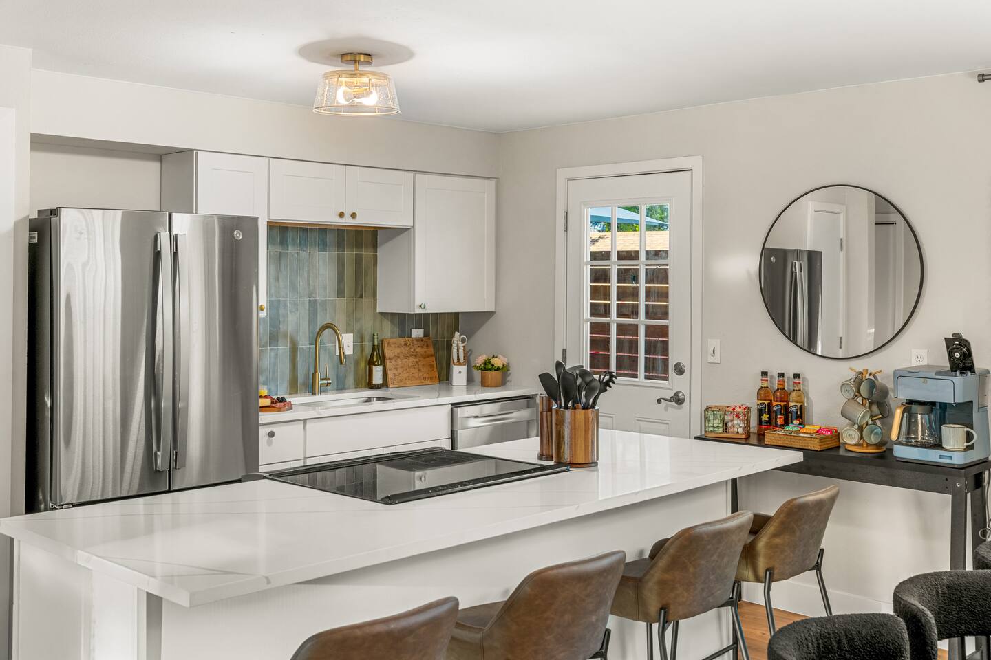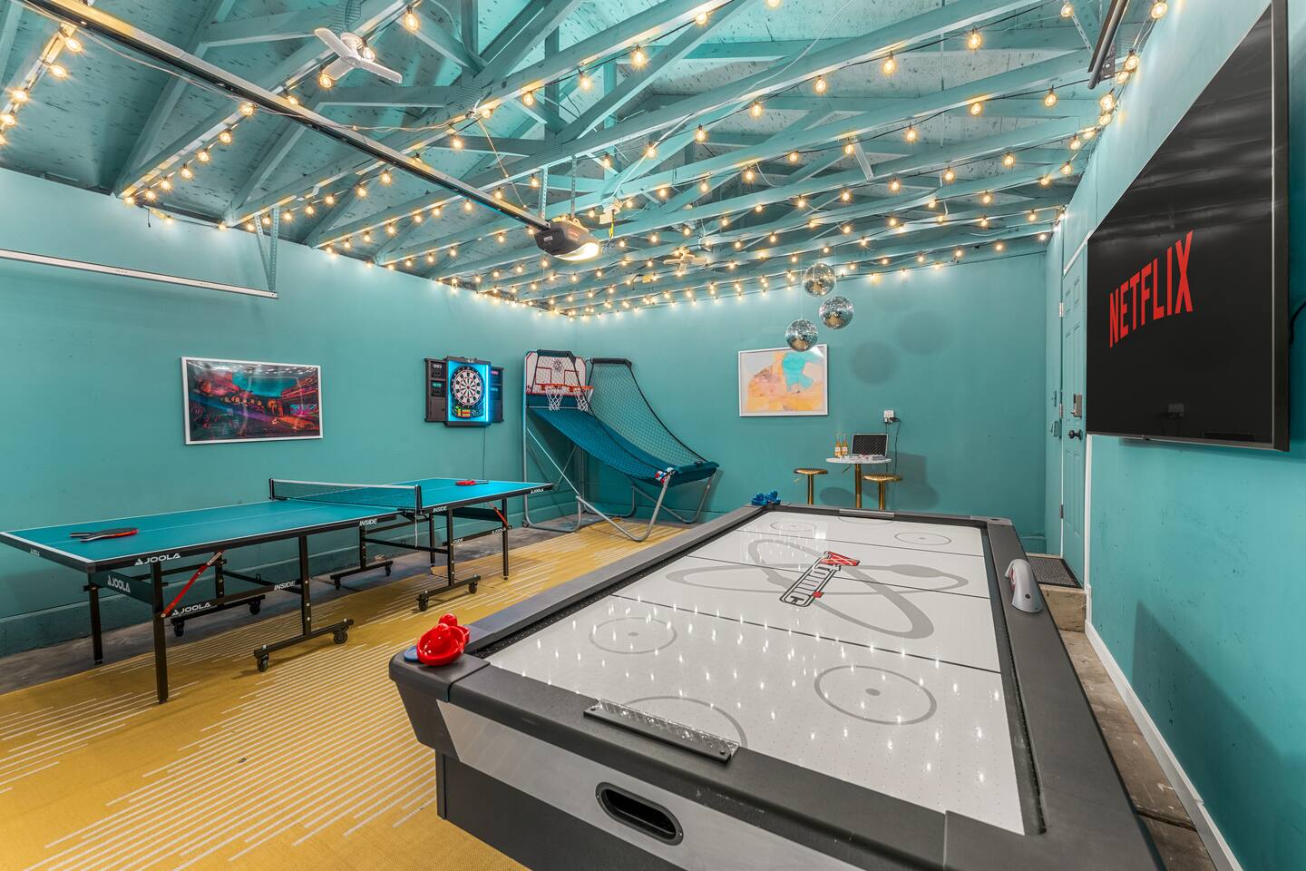 Where boutique hotel style meets homey comfort in Arvada, CO! Perfect for groups, this beautifully designed home features 5 King beds + 2 Twin bunk beds (9 total). Enjoy a modern open layout with: • Hot tub • Movie room • Air hockey, ping pong, Pop-A-Shot basketball, arcade games • Corn hole, badminton & year-round fire pit Stylish décor, luxury touches, and family-friendly amenities make this the perfect Arvada retreat for gatherings and getaways. 11 miles to Denver & 20 mins to Boulder!